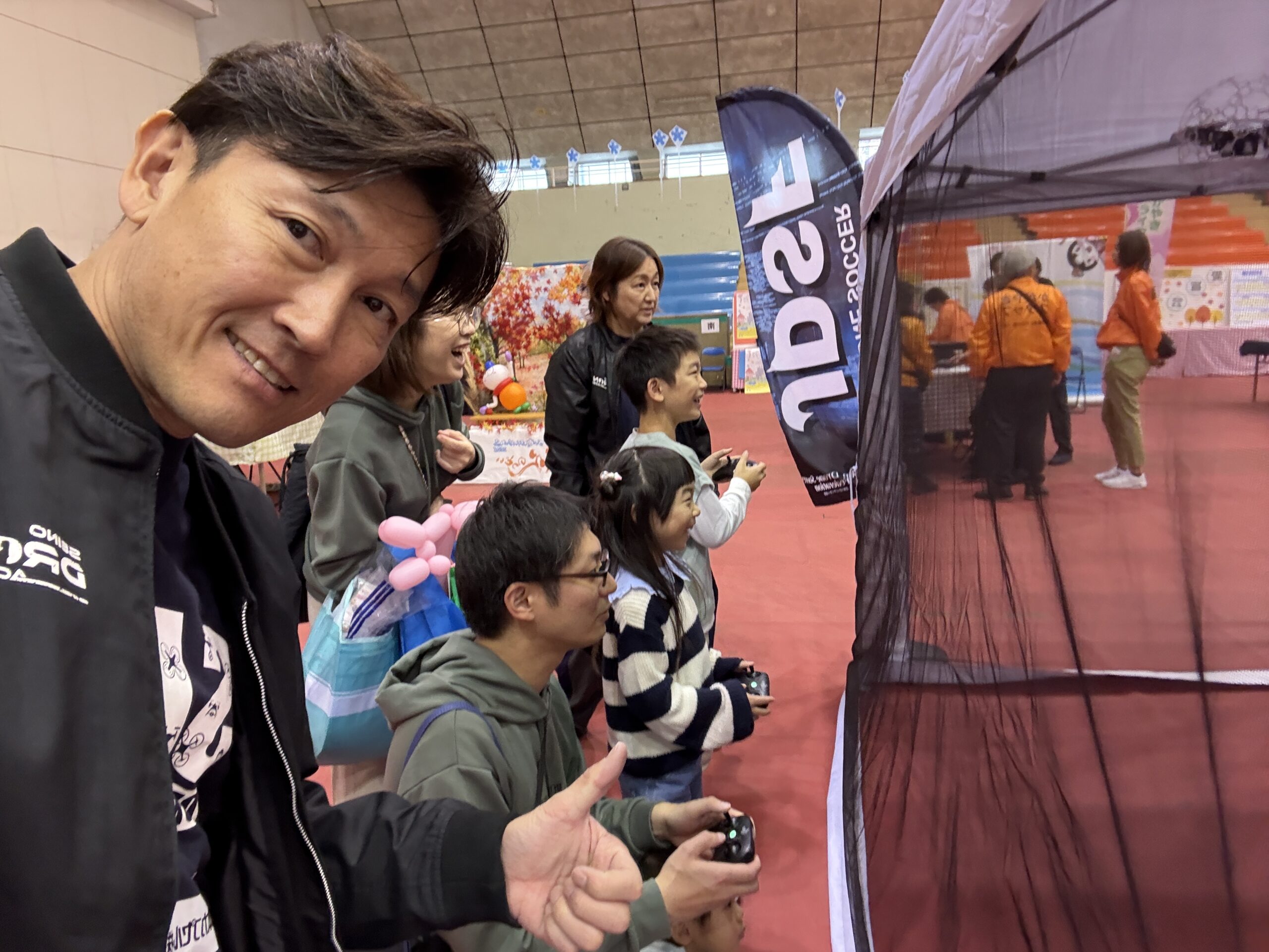 雨も心配されましたが、無事天気も良く、開催、SDA(西濃ドローンアカデミー)は、大垣市の市民団体「ドローンサッカーでつながる会」の方とドローンサッカーの体験会を実施しました。